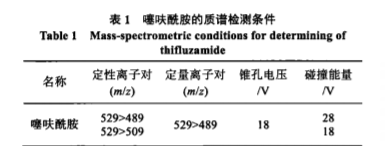 噻呋酰胺又叫噻氟菌胺(thifluzamide),屬于噻唑酰胺類殺菌劑,具有強內吸傳導性和長持效性?它是含噻唑環的苯基酰胺化合物,可防治多種作物病害,廣泛應用于水稻?麥類?花生?棉花?甜菜?咖啡?馬鈴薯?草坪等多種作物m?目前尚不能査詢到噻呋酰胺在花生作物中的最大殘留限量(maximumresiduelimit,MRL)值,我國GB2763-2016規定噻呋酰胺在稻谷中的MRL值為7mg/kg,在糙米中的MRL值為3mg/kg,馬鈴薯為2mg/kg,日本肯定列表規定噻呋酰胺在糙米中的MRL值為1mg/kg,馬鈴薯為0.05mg/kg?膳食風險評估時,花生及花生油均歸類為植物油進行評估,日膳食量按0.0327kg計算?目前國內外關于噻呋酰胺的檢測方法多種多樣,使用較多的是氣相色譜法和髙效液相色譜法其檢測方法容易受到雜質干擾,選擇性差,近年來,靈敏度高?選擇性強的高效液相色譜質譜聯用技術被用于噻呋酰胺的殘留檢測,但其檢測方式多是以負離子掃描模式為主,在實際的農殘分析時存在一定的局限性,靈敏度通常不如正離子掃描模式髙?本研究經過對前處理過程和儀器的調節優化,建立了在電噴霧正離子模式下,采用超髙效液相色譜-串聯質譜聯用儀(ultraperformanceliquidchromatography-tandemmassspectrometer,UPLC-MS/MS)多反應監測(multiplereactionmonitoring,MRM)模式,檢測噻咲酰胺在花生中的殘留的分析方法?樣品經乙腈提取,QuEChERS方法凈化,采用基質匹配外標法定量測定,以期為膳食風險評估工作打下基礎?